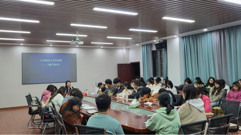 11月16日晚,湖南大学中国语言文学学院副院长、博士生导师刘舸教授受邀为伟德国际victor1946网页版师生开展题为“日本物语文学的巅峰——《源氏物语》”的学术讲座。讲座由院长龙永干主持,副院长杨水远及汉语言文学系师生近百人参加讲座。