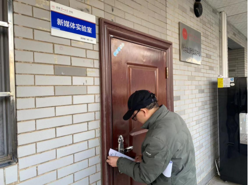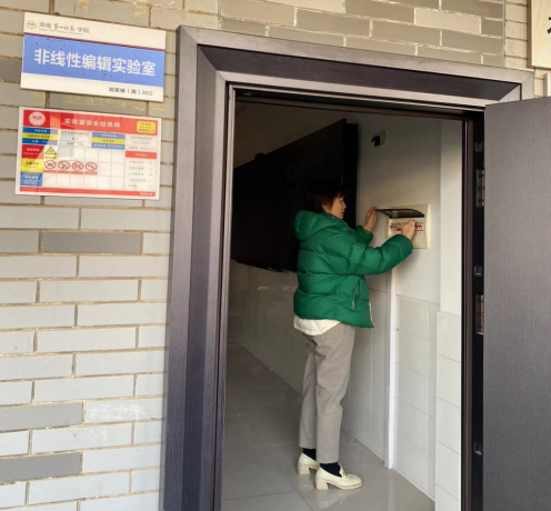 2023年12月27日上午10时,杨水远副院长带领实验员袁丁、教科办陈慧开展放假前的实验室安全大检查。检查组一行人对学院新媒体实验室、非线性编辑实验室进行了全方位的细致检查,每检查完一间实验室立即拉闸断电并粘贴封条。