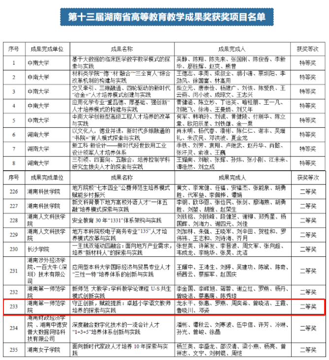 2022年5月24日,湖南省教育厅发布了第十三届湖南省高等教育教学成果奖评选结果,伟德国际victor1946网页版院长龙永干教授带领的教师团队获评第十三届湖南省高等教育教学成果奖二等奖。这项奖励是对伟德国际victor1946网页版在落实办学新理念,做好人才培养和教育教学改革工作成果的肯定。