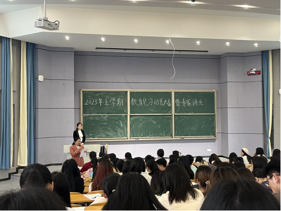 动员大会结束后,王霞副院长向同学们介绍了一师二附小胡冉副校长。胡冉副校长是湖南省首批“青年精英教师”培养对象、开福区第二届“十大魅力教师”提名奖获得者。胡校长结合了大量的教学案例来对“童心、激情、热爱、智慧”这四个词进行解读。胡校长强调了阅读的重要性,并从阅读内容和阅读方式两方面指导同学们如何教儿童阅读。讲座结束后,胡校长对同学们提出的问题进行了精彩的解答。