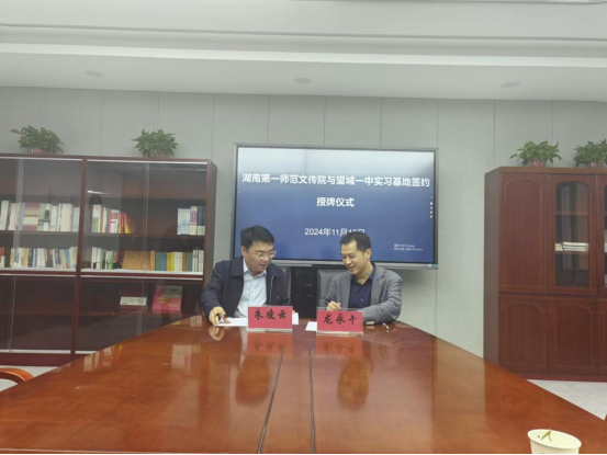 2024年11月15日,在长沙市望城区第一中学举行了实践教学基地建设签约仪式。长沙市望城区第一中学党委书记朱凌云、课程教务中心主任李文华、高一年级部主任刘凯奇以及伟德国际victor1946网页版党委书记刘立勇、院长龙永干、教科办主任林璟辉参加了签约授牌仪式。