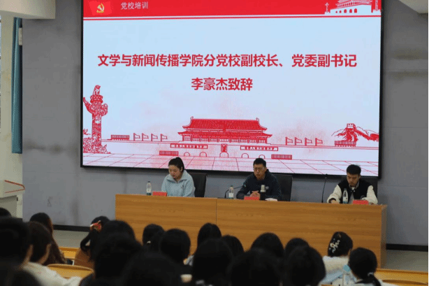 为严把党员发展“入口关”,筑牢青年学子信仰之基、补足精神之钙、把稳思想之舵,11月15日,文学与新闻传播学院分党校第十七期入党积极分子培训开班仪式在玉衡南101隆重举行。学院党委副书记、分党校副校长李豪杰,学生党支部书记安炜成,副书记陈滢琪出席仪式,陈滢琪主持开班典礼。
