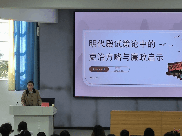 学院党委纪检委员彭娟则以传统廉政文化为切入点,通过解析明代殿试策论中的“廉为政本”思想,结合古今廉洁案例,引导学员以史为鉴,将廉洁意识融入日常,传承清廉之风。