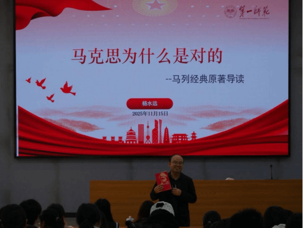 副院长杨水远以“马列经典与新时代育人使命”为题,带领学员品读《马克思为什么是对的》等经典著作,剖析马克思主义核心要义与真理价值,阐明马克思主义是立足现实、指导实践的思想武器。引导青年学子从经典中汲取思想养分,筑牢信仰之基,在学思践悟中明晰新时代青年的使命担当。