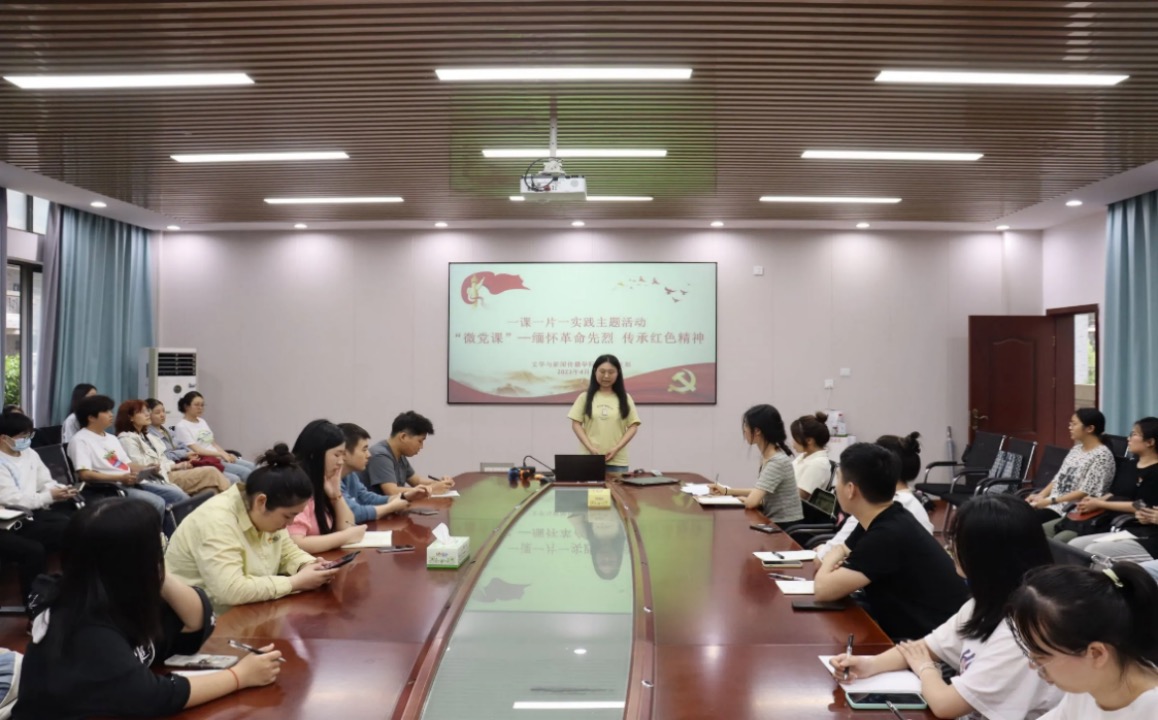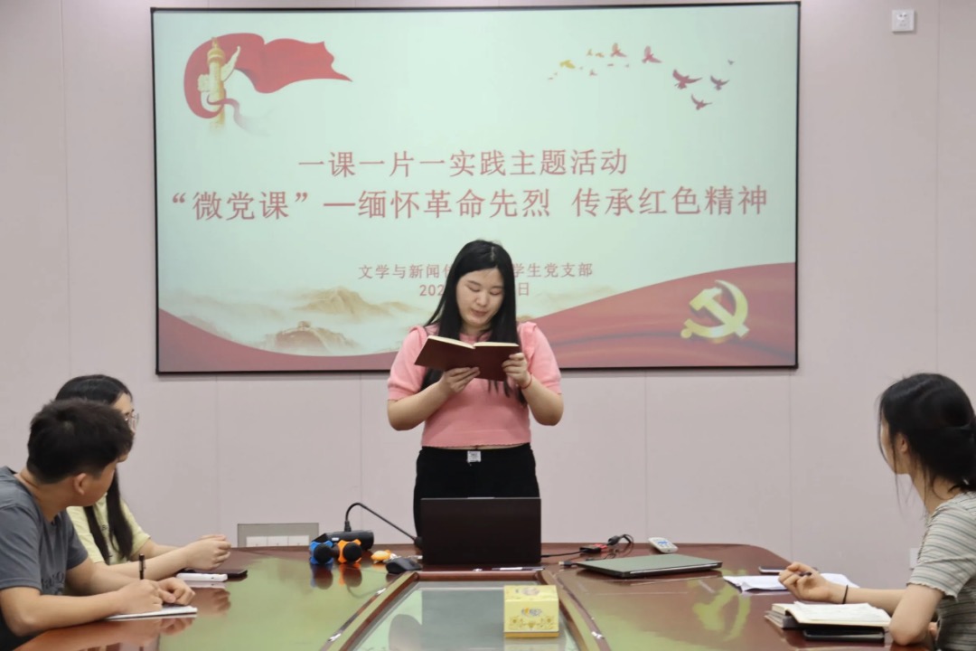 文学与新闻传播学院学生党支部于4月18日中午在玉衡楼201研讨室开展了“缅怀革命先烈,传承红色精神”的主题微党课活动。本次活动由21中文班的彭靖主持,20级中文2班张欢主讲,学生第一党支部书记副书记陈滢琪,学生第二党支部书记安炜成、副书记刘晨晨以及全体在校学生党员参会。