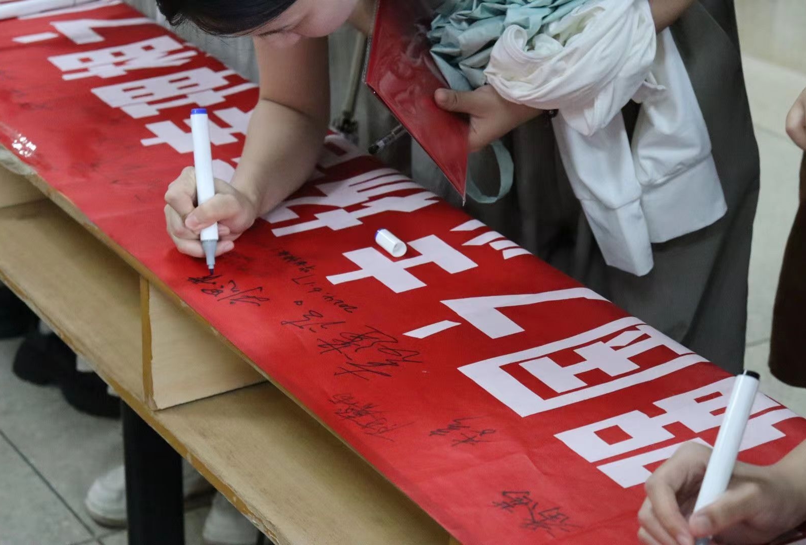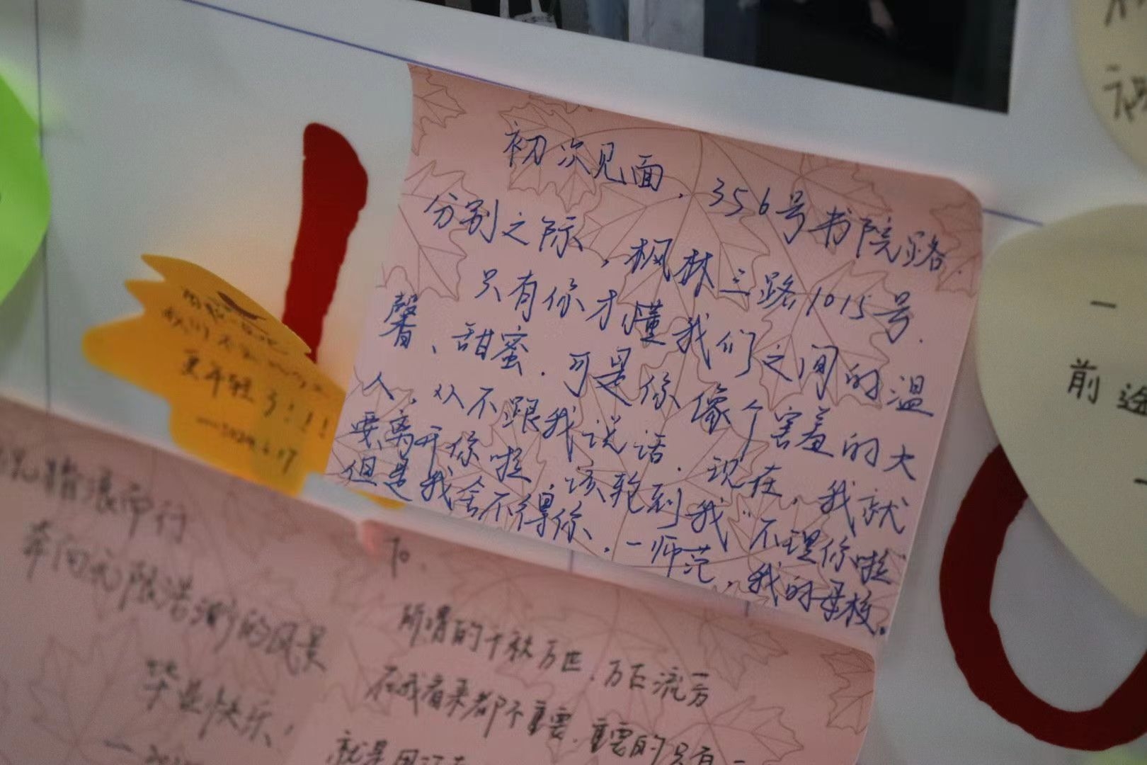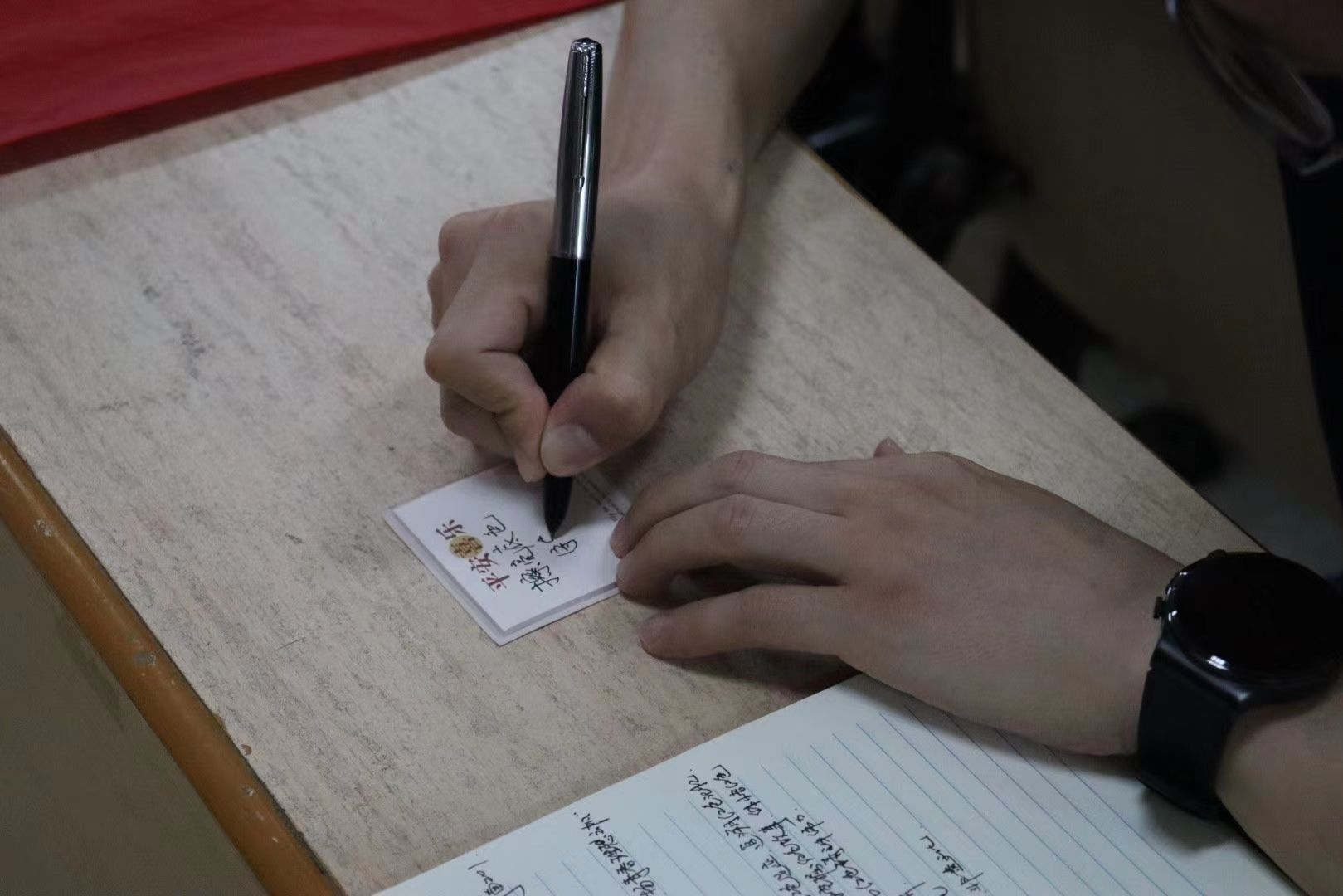 活动最后,学生党支部老师以及全体毕业生党员合影留念,毕业生党员为一师、为文传,为老师同学写下祝福和寄语,将最美好的祝福留在母校,张贴在“我想和文传说”留念墙。