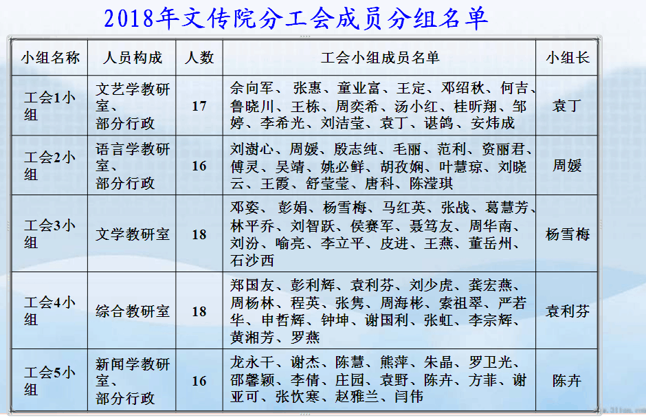 2018年文传院分工会成员分组名单