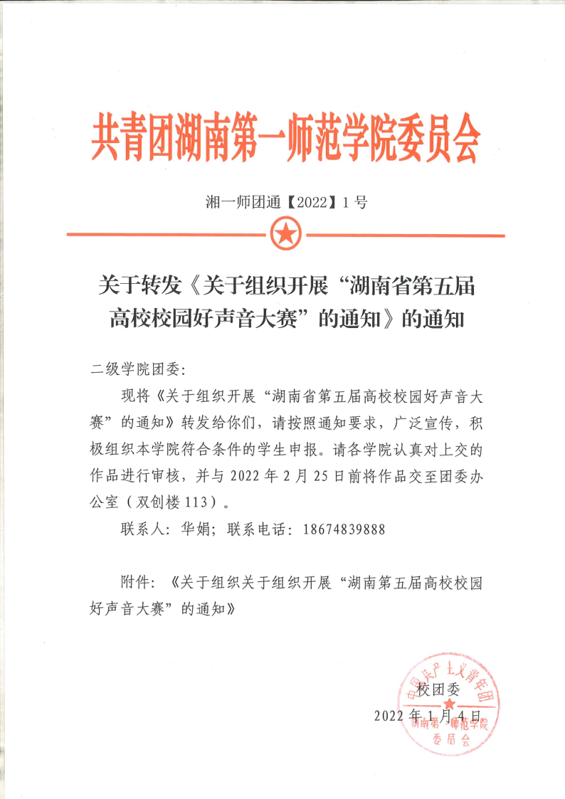 关于转发《关于组织开展“湖南省第五届高校校园好声音大赛”的通知》的通知