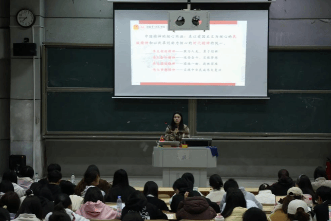 活动开始,全体学员起立奏唱共青团团歌凝聚青春共识。接着,在“精神盲盒”互动环节,学员抽取与爱国主义、改革创新等中国精神相关的关键词纸条,并结合自身认知分享感悟。其中学员曾铂娟谈到,在中国精神中爱国主义是精神基因,青年应始终心怀家国;而改革创新是时代发展的不竭动力,大学生要敢于突破思维定势。在热烈互动中,学员们初步解锁了中国精神的内涵密码。