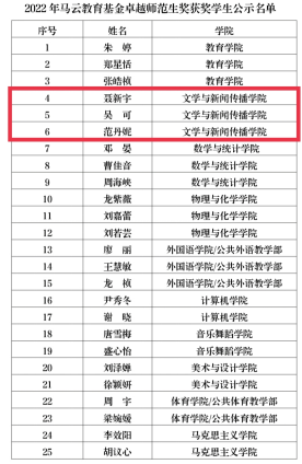 喜报!伟德国际victor1946网页版聂新宇、吴可、范丹妮同学荣获2022年度马云教育基金卓越师范生奖