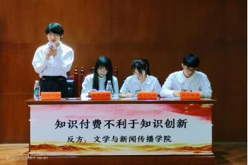 5月27日晚,BETVLCTOR伟德在线第五届“明辨杯”总决赛在特立南112模拟法庭内举行。文学与新闻传播学院辩论队和商学院辩论队在辩题为“知识付费是否有利于知识创新”的总对决中,伟德国际victor1946网页版作为辩论反方以2:1获得胜利。