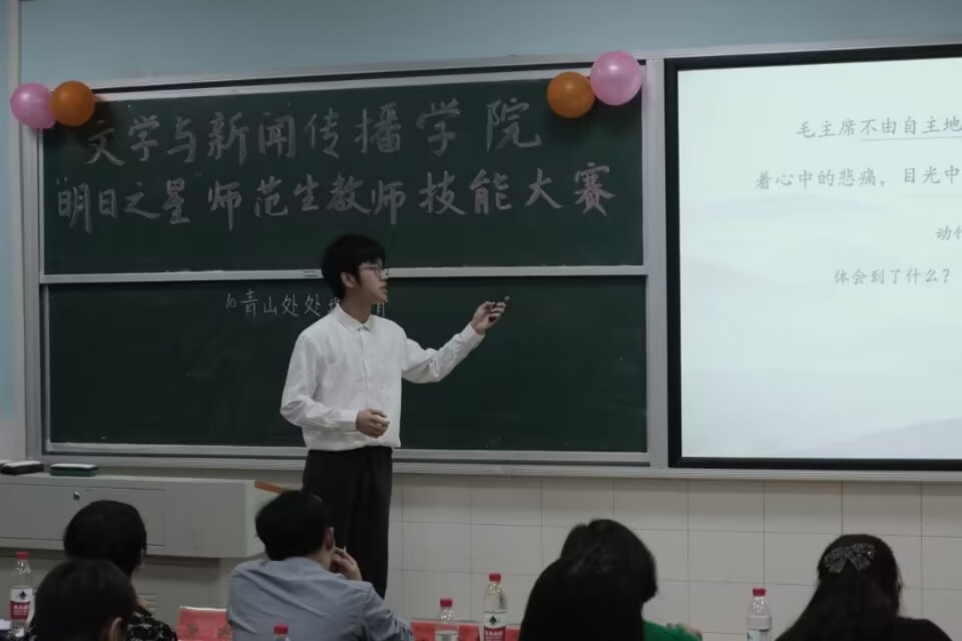 日丽风清,花芳雨霁,槐枝吐芽,吴蚕弄丝。在这个生机勃勃的四月,为以赛促学、以赛促教、以赛促研,加强师范生实践能力培养,促进师范生综合素质和教学能力提升,文学与新闻传播学院于4月19日晚隆重举办第二十一届“明日之星”师范生教师技能大赛决赛。决赛特邀龙永干院长、科研处罗燕副处长、王霞副院长、周杨林老师和邹婷老师担任评委,教科办陈慧及学工办全体辅导员老师以及学院百余名学生参与观摩此次比赛。