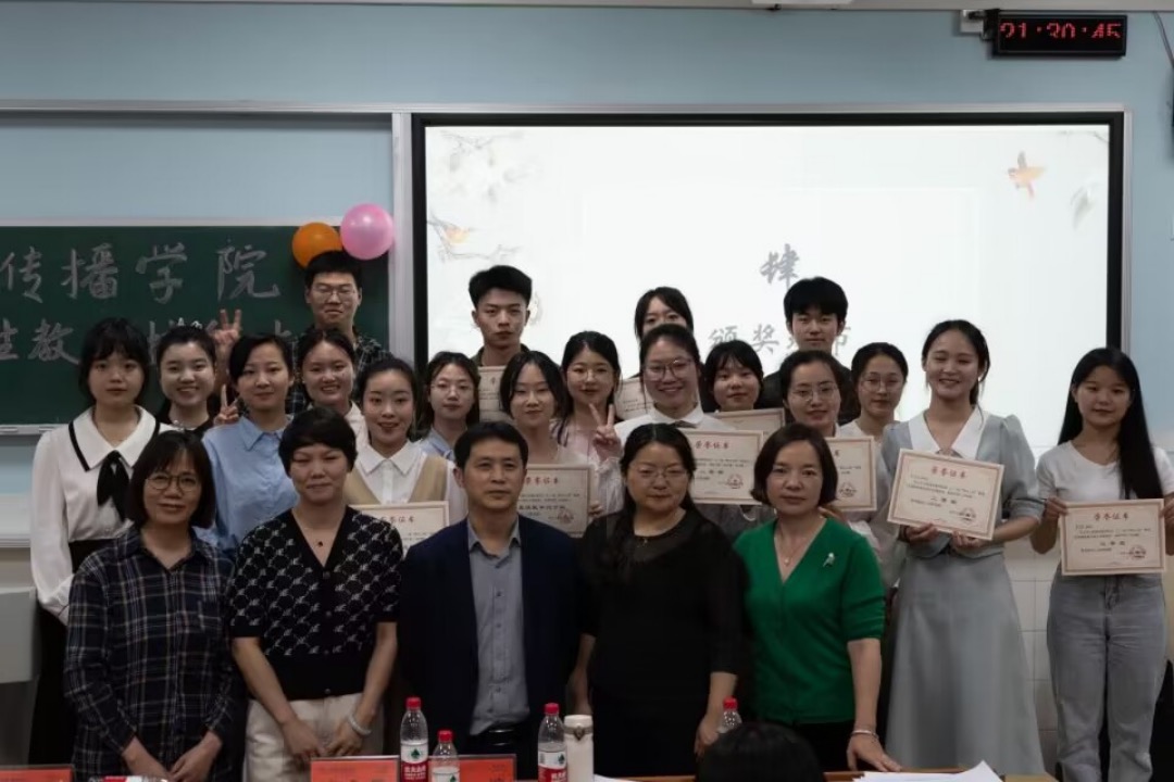 经过精彩激烈的角逐,最终罗晶、陈梓培、杨祎婧同学脱颖而出,分别夺取甲、乙组一等奖,李子佼、齐锦龄、宋雅琴、杨威、孙坤荣获甲组二等奖,邓星星、李汪蔓荣获乙组二等奖,舒怡、雷婧婷、杨懿乐、李昊翔、彭佳荣获甲组三等奖,李卓凡、肖睿一、朱聪荣获乙组三等奖。此外,陈梓培、邓星星分别荣获甲、乙组最佳教学设计奖,罗晶、杨祎婧分别荣获甲、乙组最佳教态奖。评委老师为获奖选手颁奖并合影留念。