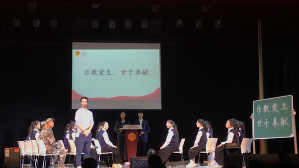 2023级汉语国际教育1班团支部以“弘扬教育家精神,以仁爱之心行理想坦途”为团课主题,挖掘、理解教育家精神的内涵,提出并解答了青年师范生如何将新时代教育家精神融入学习和生活这一问题。团课以情景剧的形式展示古今中外教育家的言行和志向,朗诵、快板、手势舞、对话等丰富方式呈现对于教育家精神的理解和践行教育家精神的决心。团支部还邀请到了阿尔及利亚留学生习德麦来到团课现场共话教育家精神,现场氛围活跃、观众反响热烈。