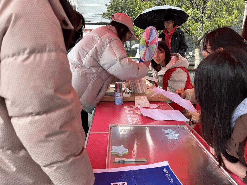 活动逐渐推进,趣味答题和星星留纸环节将同学们的热情点燃。同学们兴奋地抽取纸条,积极思考并互相讨论答案,争先恐后地回答问题,互相之间还不忘打趣和鼓励,现场洋溢着轻松愉快的氛围。星星纸条留言引导同学们认真思考遵义会议精神对自己的启发,并将其化为文字,贴在展板上,形成一幅充满梦想与希望的图案。