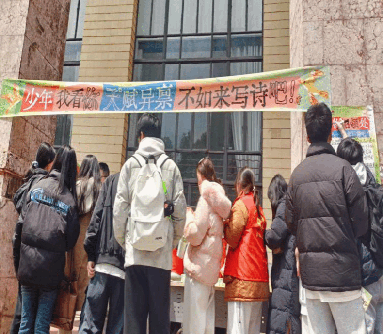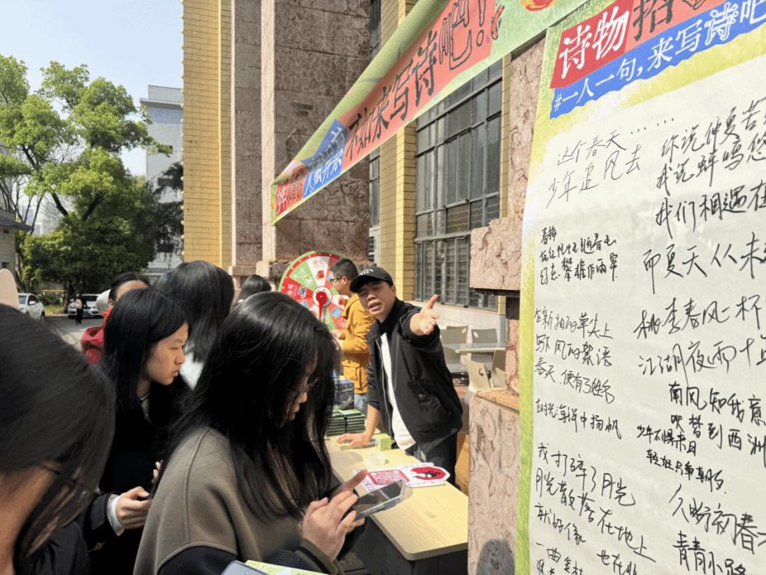 4月1日,一场充满文化气息与青春活力的线下快闪互动活动在城南校区火炬楼侧火热开展。伟德国际victor1946网页版携手茶颜悦色、南京出版社共同举办了“少年如诗行”三行诗大赛,为城南校区全体学生搭建了以诗会友的交流平台。