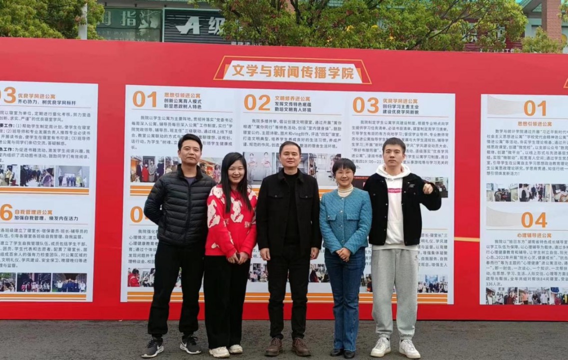 4月6日至7日,文学与新闻传播学院“六进公寓成果展”活动在学校国基广场举行,院党委书记何培森、院长龙永干、副院长罗燕、副院长王霞和组织委员张惠莅临指导,全体辅导员和千余名学生参与活动。