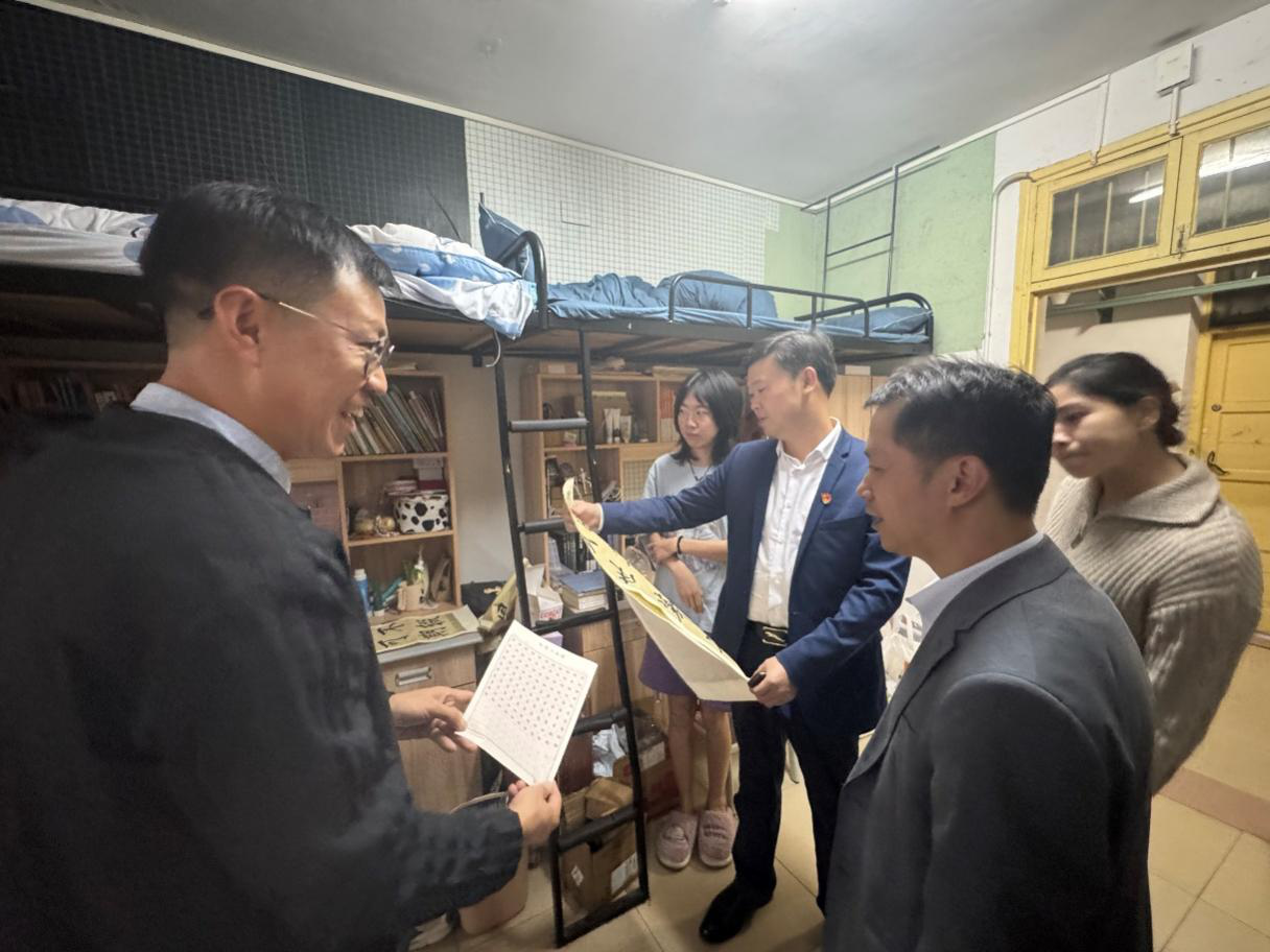 11月12日下午,文学与新闻传播学院党委书记刘立勇、院长龙永干、党委副书记李豪杰、学工办主任王娜带领全体辅导员深入学生寝室,关心了解学生的学习、生活情况。