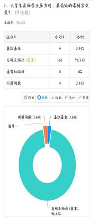 活动期间,伟德国际victor1946网页版依托问卷星平台开展了心理健康知识问答比赛,以线上答题形式组织学生学习心理常识、疾病应对等理论知识,有效提升了学生的心理自助能力,部分题目如“大学生面临学业压力时最有效的缓解方式”正确率达95.32%。同期,“情绪日历设计”大赛活动也同步开展,同学们用一周时间以天气符号、创意图案记录每日情绪变化,在“情绪气候分析”中总结规律,将抽象情绪转化为可视化表达,逐步建立起对自身情绪的觉察力。