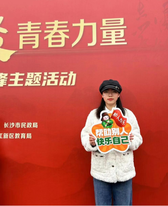 她利用在校期间学到的知识和经验,发挥自己的专业知识,负责配合共青团安仁县委开展各类志愿服务活动,并积极参加团县委组织的腊八节感恩粥活动、12355青春自护·平安春节青少年自护教育活动、寒假“暖冬行动”春运活动、“岗位送上门,安全进万家”走访活动等。此外,她还积极配合团县委运营共青团安仁县委员会公众号、管理“安仁县新时代青年志愿服务队”志愿汇等工作。