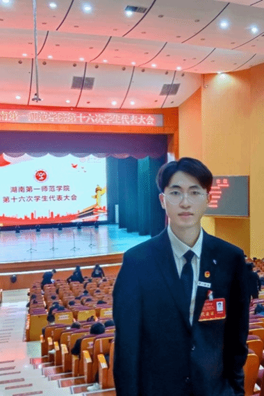 文学与新闻传播学院21级广播电视学1班学生,曾任院学生会执行主席,现任班级宣传委员。大学期间被评为“优秀共青团员”“三好学生”“优秀学生干部”“优秀志愿者”等,获得国家励志奖学金、校级二等奖学金等。在国家级、省级、校级等比赛中均获佳绩,获得第15届全国大学生广告艺术大赛国家级优秀奖、省级三等奖,湖南省安全短视频大赛二等奖,大学生创新创业比赛省级课题立项,“挑战杯”校级三等奖等奖项。