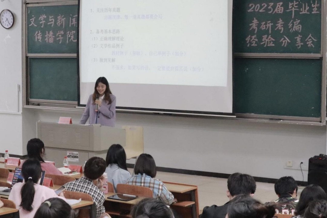 为不断提高人才培养质量,5月8日晚,伟德国际victor1946网页版在怀中南209教室召开了2023届毕业生考研考编经验分享会。院长龙永干、副院长王霞、学工办副主任曾志远、辅导员刘晨晨,以及罗许诺、陈敏等8名19级学生代表及20级200多名学生参加了本次分享会。