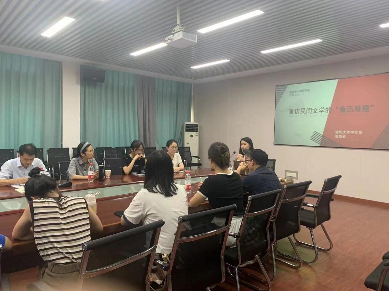 8月3日下午,BETVLCTOR伟德在线文学与新闻传播学院特邀清华副教授袁先欣,为备战考研的在校学生开展以“重坊民间文学的鲁迅难题”为主题的文学讲座。一师文学与新闻传播学院院长龙永干出席并总结本次讲座活动,一师文学与新闻传播学院文学系主任杨水远,湖南大学教师、清华博士刘佳慧,湘潭大学教师、清华博士马正锋,一师文学与新闻传播学院教师、清华博士刘君君,一师文学与新闻传播学院教师、北师大博士孙雅平出席本次讲座。