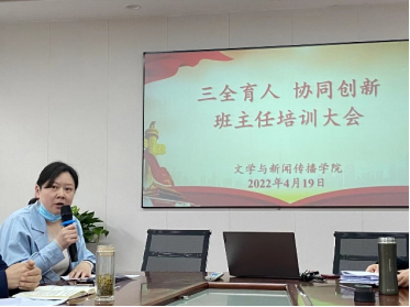 4月19日下午3点,文传院党政领导组织全体辅导员、一二年级班主任召开了“三全育人 协同创新”班主任培训大会,会议由院党委副书记欧阳范剑主持。