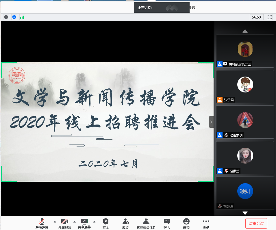 疫情之下,为切实加强伟德国际victor1946网页版与用人单位的沟通联系,健全毕业生供需信息网,实现毕业生更高质量和更充分的就业,7月6日,伟德国际victor1946网页版举行了2020年线上招聘推进会。学院党总支书记佘向军、院长龙永干、党总支副书记欧阳范剑、学工办主任唐科、全体辅导员和2020届毕业生参加了本次线上招聘推进会。本次会议邀请了包括教育、影视传媒、文化传播、网络科技等行业在内的10余家招聘单位进行了线上招聘宣讲。