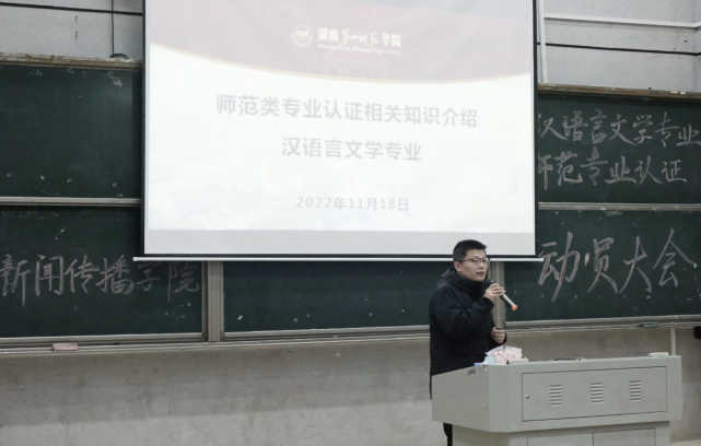 为推动师范类专业内涵建设,聚焦师范生能力培养,不断提高人才培养质量,伟德国际victor1946网页版于11月18日在怀中南110召开汉语言文学专业认证专家进校考查学生动员大会,院党委书记何培森、教科办主任谌鸽、全体辅导员、2020—2022级汉语言文学专业学生参加会议,会议由学工办主任唐科主持。