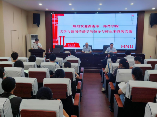 为积极推进师范教育培养模式改革,开拓学生视野,丰富知识,领略不同高校的办学风格与创设条件,9月14日,院长龙永干带领汉语言文学专业2022级润之英才班前往湖南大学中国语言文学学院开展游学活动,副院长杨清华、副院长杨水远、汉语言文学系副主任卢阿涛以及辅导员老师李倩参与此次活动。