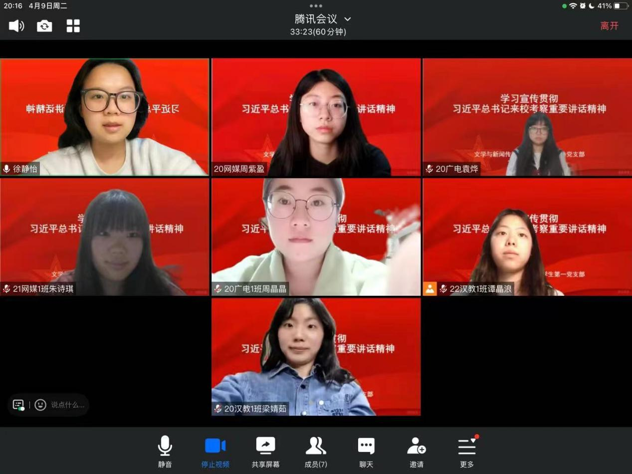 为响应学校党委发出的迅速掀起学习宣传习近平总书记考察我校重要讲话精神热潮的号召,按照学院党委部署要求,4月9日晚,伟德国际victor1946网页版学生第一党支部通过腾讯会议召开支部大会,集体学习习近平总书记考察我校重要讲话精神。会议由支部书记唐科主持,全体党员、预备党员参加会议。